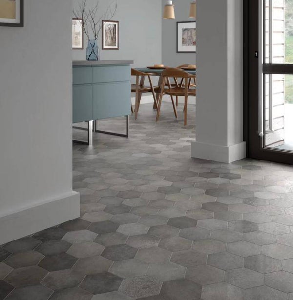 Serie hexagon tegels voor vloer en wand in formaat 17,5x20 cm. De kleurnuances geven een heel mooi effect. De tegel is van porselein, slijtvast en gemakkelijk in onderhoud. Prijs is per m2. De levertijd is ca 3 weken.