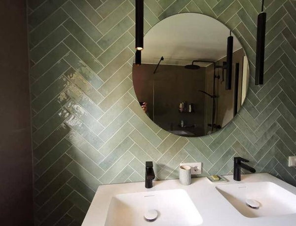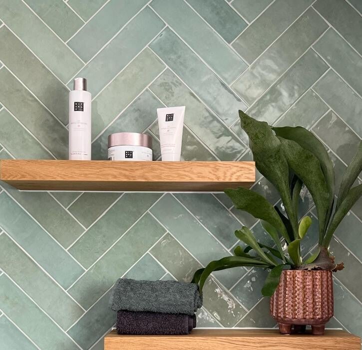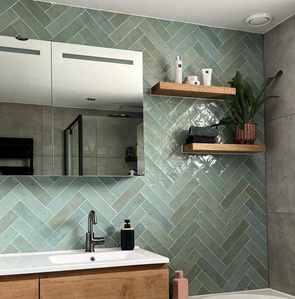 Handvorm wandtegels klein formaat 6,5x25 in glans uitvoering. Door de verschillende tinten in de tegels wordt de wand levendig en aansprekend. De levertijd is een week. De prijs is per 0,96 m2.