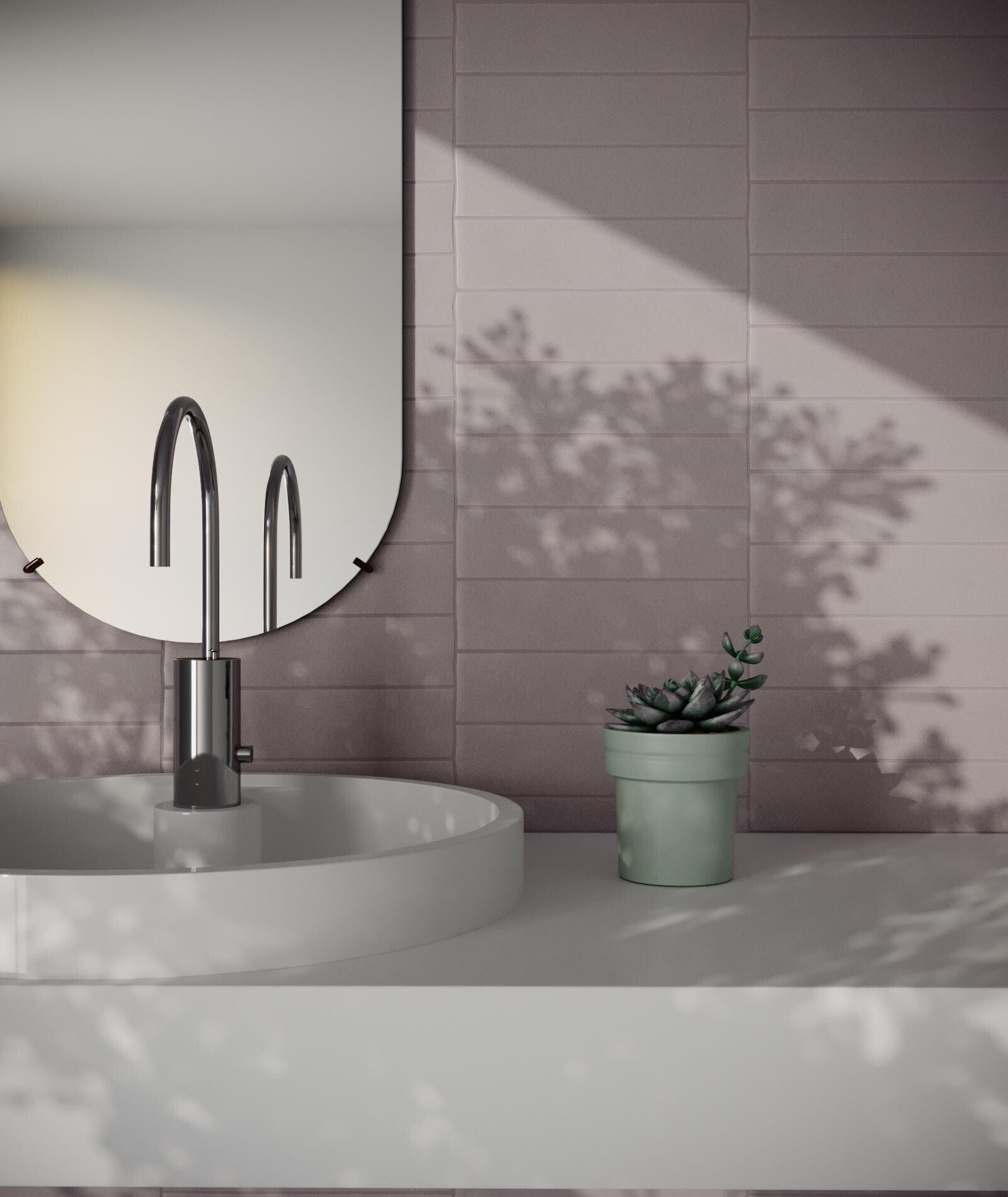 Matte wandtegelserie in effen kleuren met een vleugje parelmoer. Dit laatste geeft een mooi effect mee aan de tegels. Het formaat is 6,2x25 cm. De prijs is per 0,96 m2. De levertijd is een week.
