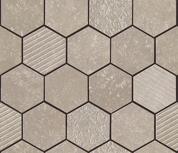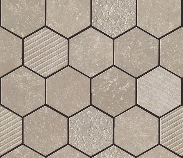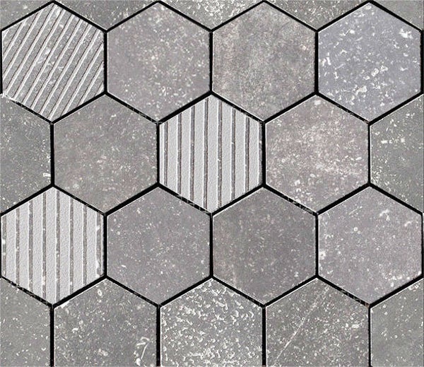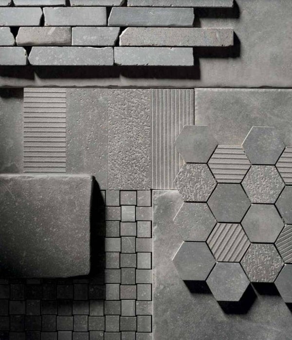 In de afbeeldingen komen we als eerste de murotto (steentjes in halfsteens verband) tegen, dan de texture mix (diverse bewerkingen in stroken gemixt), dan de exa (honingraat) en de trama (mozaiek).