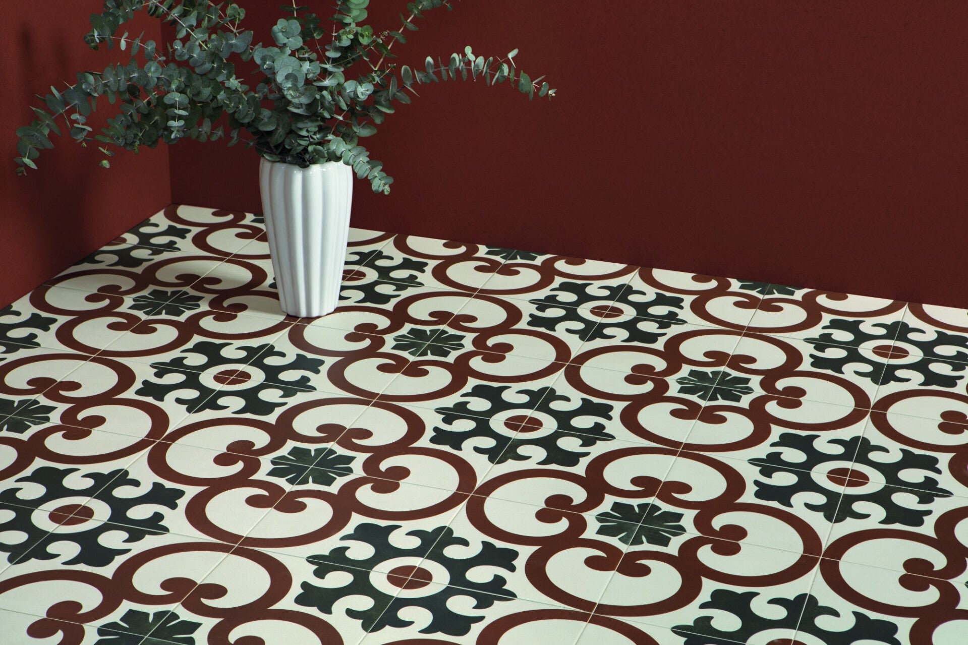 Geïnspireerd door de traditionele koloniale vloeren van de Antillen, is Aruba een porseleinen tegelcollectie bestaande uit zeven modellen van 22,3x22,3 cm, die doen denken aan vintage cementtegels. Naast klassieke grijs- en zwarttinten vind je ook nieuwe tinten donkerrood, mosterdgeel, groen en blauw, met bloemen- en ornamentmotieven die kunnen worden gecombineerd om doorlopende ontwerpen te creëren. De tegels zijn van porselein en geschikt voor wand en vloer binnenshuis. De prijs is per m2. De levertijd is ca. 4 weken.