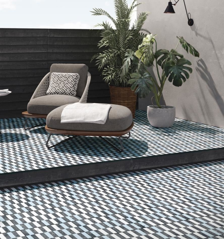 Patroontegel 20x20x1 cm met anti-slip oppervlak om buiten toe te passen. Tegels zijn van porselein en in de massa gekleurd. Slijtvast, vorstbestendig en makkelijk in onderhoud. Prijs is per m2. Levertijd is 3 tot 4 weken.