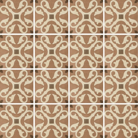 Patroontegel 20x20x1 cm met mat oppervlak voor wand en vloer. Tegels zijn van verglaasd porselein. Slijtvast, vorstbestendig en makkelijk in onderhoud. Prijs is per m2. Levertijd is 3 tot 4 weken.