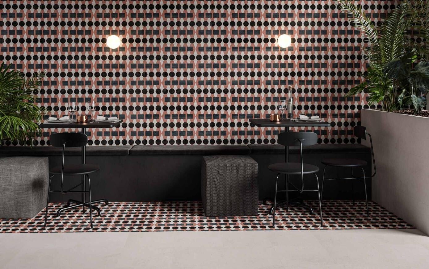 Serie matte porseleinen patroontegels met primitieve patronen en kleuren uit de jaren 70. Dus helemaal hip vandaag de dag. De tegel werkt even goed op de wand als op de vloer. Er is een lichte uni tegel om te combineren. Het formaat is 30x30 cm. Tegels zijn slijtvast en gemakkelijk in onderhoud. Prijs is per m2. Levertijd is ca 4 weken.