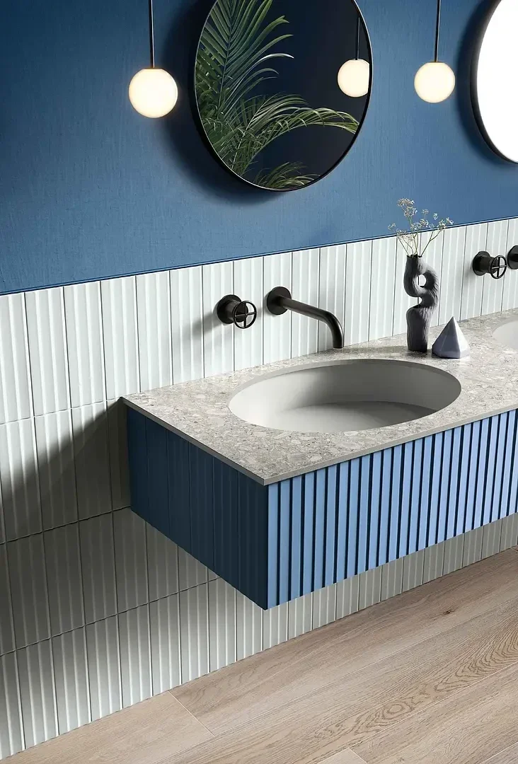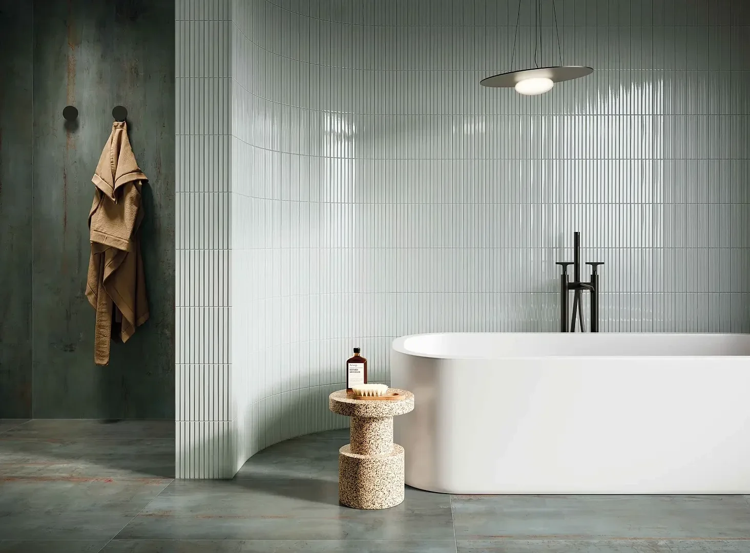 Vrolijke serie Flow van Flaviker met klein formaat wandtegel in mat en glans. De kleuren zijn onderling te combineren, de glans en matte tegels ook. Geeft verrassende effecten. De prijs is per m2. De levertijd is ca 4 weken. De minimale bestelhoeveelheid is 5 m2.