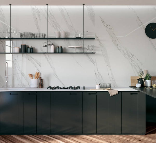 Serie porseleinen glanzende tegels geïnspireerd door de mooiste marmersoorten. De tegels zijn er in diverse formaten, ook in grote slabs voor de wand. Wilt u daar iets van weten stuur ons dan een bericht. Let op met gepolijste tegels voor de vloer: ook al zijn ze kwalitatief nog zo hard, er kunnen in de loop van de tijd krasjes op komen. Prijs is per m2. Levertijd 4 weken. Minimale afname 25 m2.