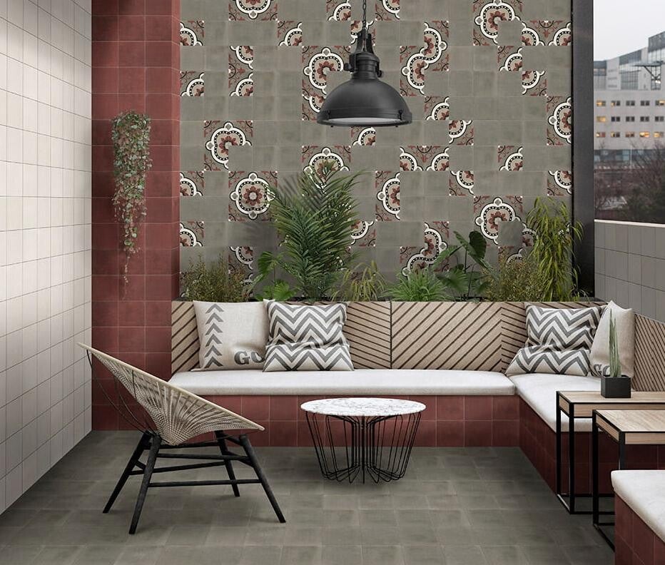 Unitegel passend bij de Barcelona- en Sevilla patroontegels,  formaat 20x20 cm. De tegel is geschikt voor wand en vloer binnenshuis. De tegel is anti-slip en gemakkelijk in onderhoud. Er zijn diverse combinaties mogelijk. Prijs is per m2. Levertijd is ca 3 weken.