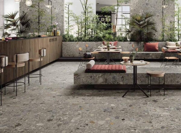 Serie natuurlijke vloer en wandtegels met kleuren die in elkaar overlopen en onderling goed passen. Ook om de scheiding tussen binnen en buiten te overbruggen. Stoer design, beetje industrieel, beetje terrazzo, beetje natuursteen maar vooral erg mooi. De tegels zijn van porselein, slijtvast en gemakkelijk in onderhoud. Diverse formaten verkrijgbaar, levertijd ca 4 weken. Minimale bestelhoeveelheid 5 m2. Heeft u een grote hoeveelheid nodig, stuur dan eerst een mail voor de prijs.