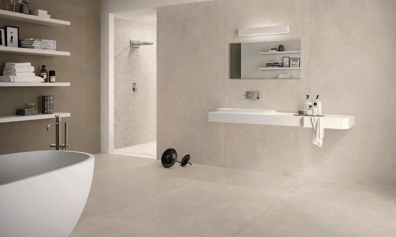 De designer van de serie Moove heeft een stad in gedachten gehad met patronen, ritmes, rijstroken en zacht beton. Moov's beton