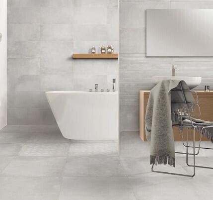Nieuwe serie Betonlook in de kleuren (van links naar rechts en van boven naar beneden: Grit (warm lichtgrijs) - Lime (ichtgrijs) - Clay (middengrijs) - Rust (donkergrijs)- Land (antraciet) in het formaat 90x90 cm. Dus lekker groot. Prijs is per m2. De lage prijs is vanaf 40 m2 en de hogere prijs is voor een hoeveelheid kleiner dan 40 m2. De levertijd is een week.