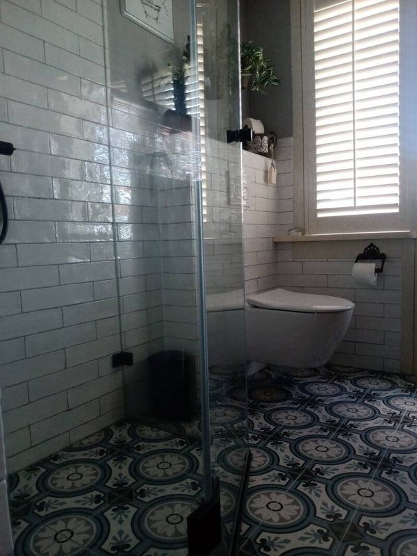 Sfeervolle badkamer van onze klanten Pieternella en Elvin met een patroontegel op de vloer en een handvorm warmtegel afgewerkt met moldura op de wand. Wij vinden het geheel heel mooi geworden. Wilt u ook zo'n badkamer dan ziet u hieronder de onderdelen waaruit deze is opgebouwd. Prijs vloer en wand is per m2. Prijs bolle strip is per strekkende meter. Levertijd is een week.