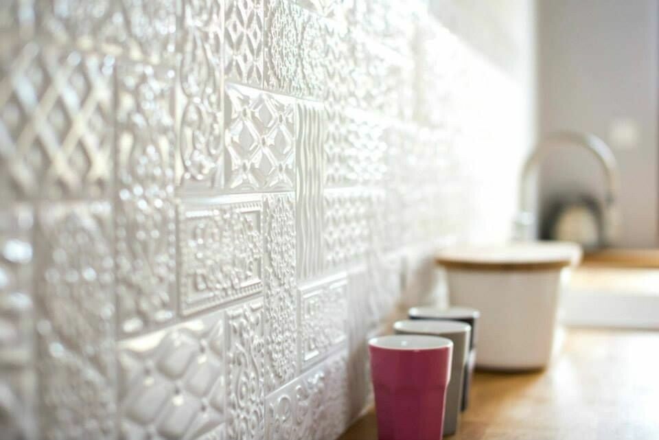 Fraaie wandtegel met relief in formaat 10x20 cm. De 8 verschillende designs zitten gemixt in de doos. Mooi om als accent aan te brengen op de wand in keuken, badkamer of toilet. Kan ook goed gecombineerd worden met metrotegels of vlakke tegels 10x20 cm.