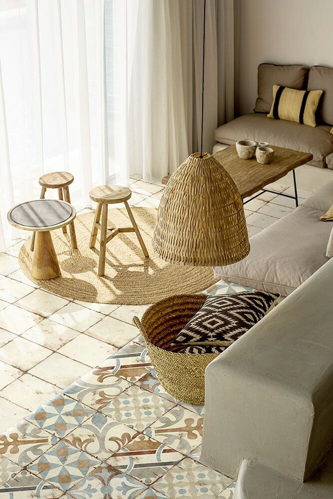Patroontegel unikleur ivoor passend bij de patroontegels in bohemian look formaat 20x20 cm. Sterke tegel, kan op de wand en de vloer binnen en buiten toegepast worden. Prijs is per m2 en de levertijd is 4 weken.
