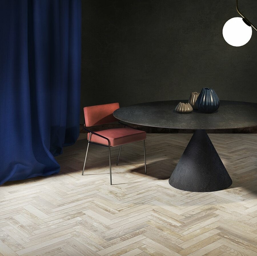 Mooie vloertegel verouderde houtlook in verglaasd porselein. Slijtvast. Tegel is verkrijgbaar in formaat 7,5x40 cm en 20x120 cm. Met name het kleine formaat leent zich bij uitstek voor de nu zo populaire visgraat vloer. Prijs is per m2. Levertijd is vanaf 1 tot 3 weken.