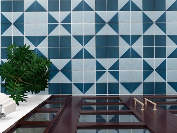 Frisse serie porseleinen tegels met geometrische decors en unitegels in formaat 20x20 cm waar verrassende vloeren en wanden mee betegeld kunnen worden. Tegels kunnen onderling gecombineerd worden. Prijs is per m2. Levertijd is drie tot vier weken.