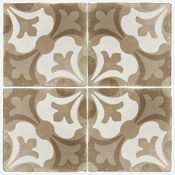 Er zijn unitegels in de kleuren Umber (de eerste) en Umber (de tweede en de lichtste) die passen bij de patroontegels. Tegels zijn slijtvast en gemakkelijk in onderhoud. Prijs is per m2. Levertijd is een week.