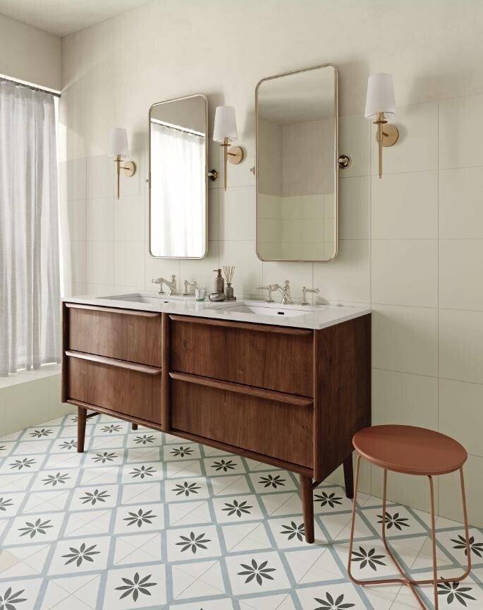 Tegelserie geïnspireerd door het gouden tijdperk voor de eerste wereldoorlog, bekend als de Belle Époque. Er was vrede, relatieve welvaart, culturele en technologische bloei met Parijs als centrum van de kunst. Deze tegels zijn van porselein, dus slijtvast en gemakkelijk in onderhoud. Kleuren zijn rustig zodat ze goed te combineren zijn in onze modernere huizen. Formaat is 30x30 cm. Dus iets groter dan de gebruikelijke kleine patroontegels in formaat 20x20 cm. Prijs is per m2. Levertijd ca 3 weken.