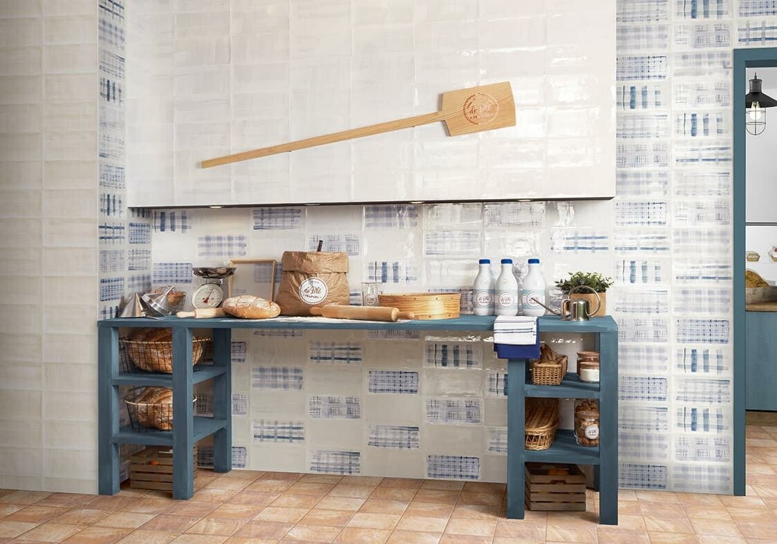 Wandtegelserie Acquarel in een viertal kleuren met bijpassende decortegels in formaat 15x30 cm. Voor de liefhebbers van een levendige wand is dit zeker een aanrader.