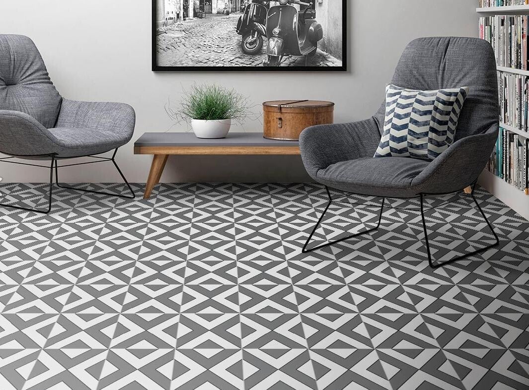 Vloertegel in zwart/wit/grijs serie met sterke grafische patronen. Formaat 20x20 cm. Tegel is van porselein, slijtvast en gemakkelijk in onderhoud. Prijs is per m2. Levertijd vanaf 1 week tot 3 weken.
