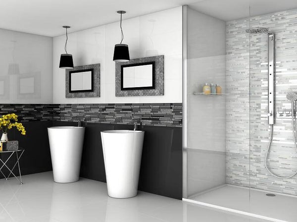 Mozaiek van gemengde materialen, geschikt voor de wand. Reinigen met zuurvrije schoonmaakmiddelen. Prijs is per matje.  Levertijd 1 tot 2 weken.