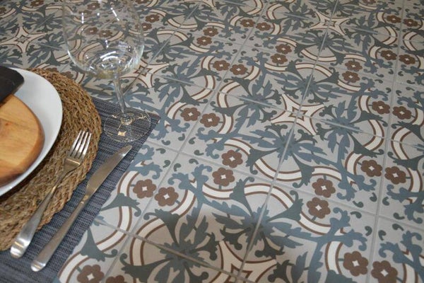 Patroontegel uit de serie Bel Air in formaat 15x15 cm. Replica's van vloeren in oude herenhuizen die de grandeur van weleer weer tot leven brengen. De tegels zijn van verglaasd porselein. Gemakkelijk in onderhoud en slijtvast. De prijs is per m2. De levertijd is vanaf een week.