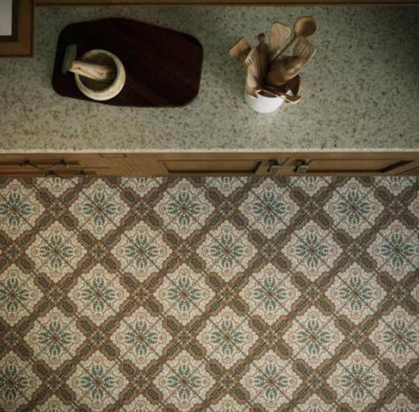 Patroontegel uit de serie Bel Air in formaat 15x15 cm. Replica's van vloeren in oude herenhuizen die de grandeur van weleer weer tot leven brengen. De tegels zijn van verglaasd porselein. Gemakkelijk in onderhoud en slijtvast. De prijs is per m2. De levertijd is vanaf een week.