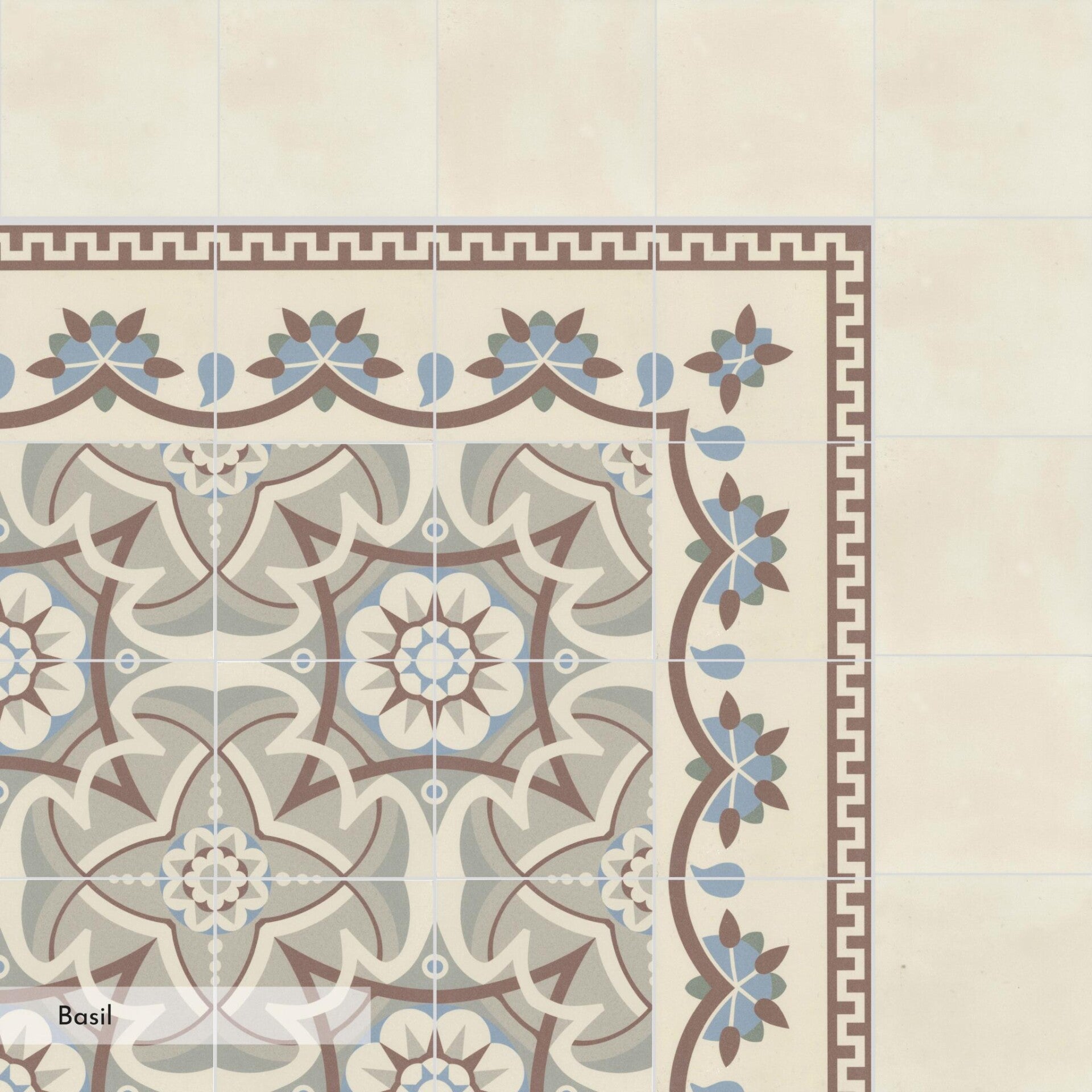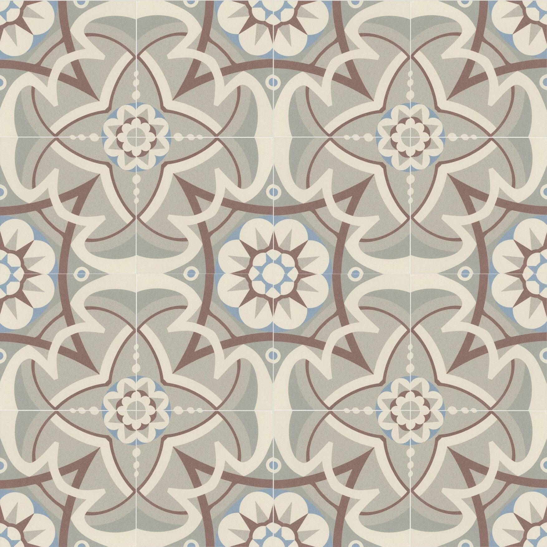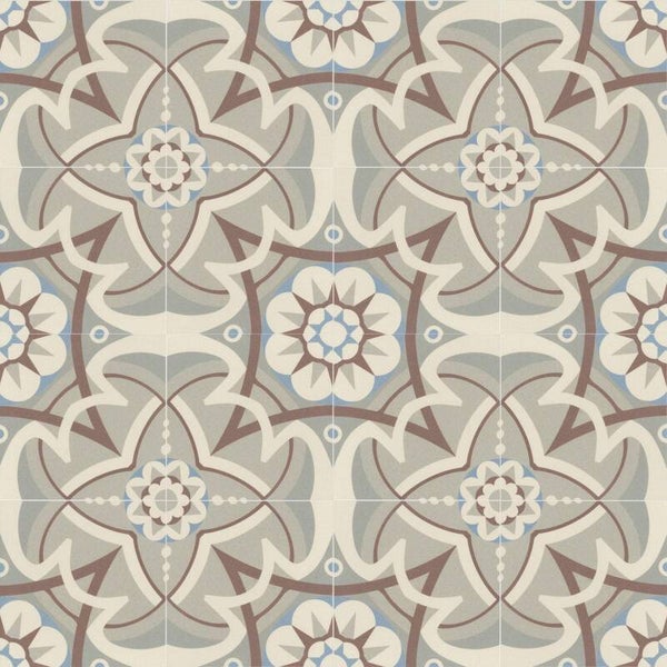 Patroontegel uit de serie Bel-Histoire in formaat 15x15 cm. Replica's van vloeren in oude herenhuizen die de grandeur van weleer weer tot leven brengen. De tegels zijn van verglaasd porselein. Gemakkelijk in onderhoud en slijtvast. De prijs van de vloertegels en de randtegels is per m2. De prijs van de hoektegels is per 4 stuks. De levertijd is vanaf een week. Er zijn ook bijpassende hoeken en randen beschikbaar.
