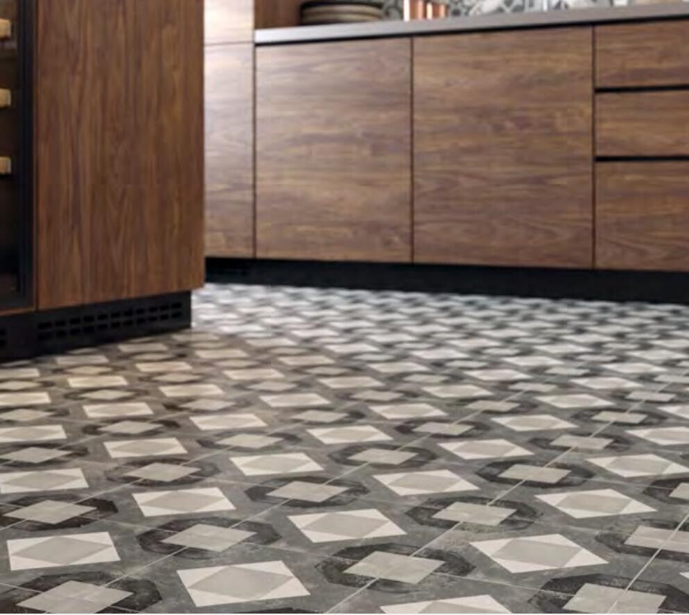 Patroontegel in rustige kleuren van Castelvetro. Formaat 20x20 cm. Tegel is van porselein, slijtvast en makkelijk in onderhoud. De prijs is per m2. De levertijd is een week.