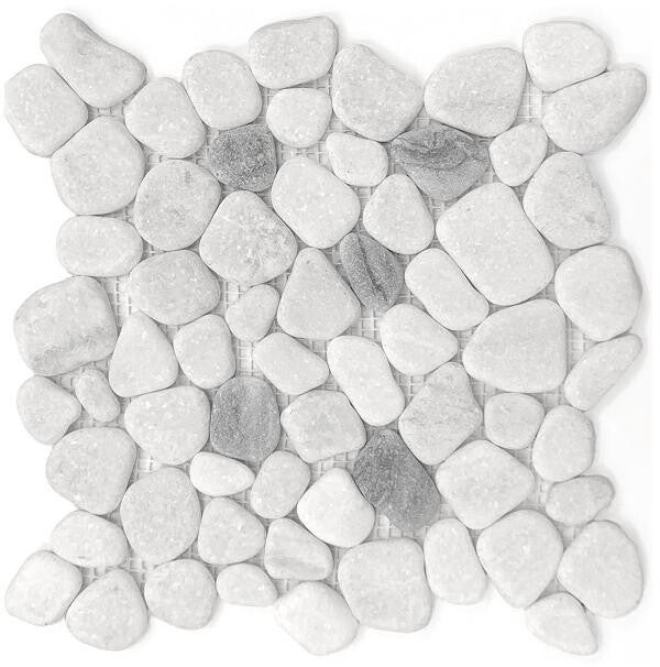 Mozaiekmatje van vlakke rivierkeitjes formaat 30x30 cm. Prijs is per stuk. Levertijd is 1 tot 2 weken.