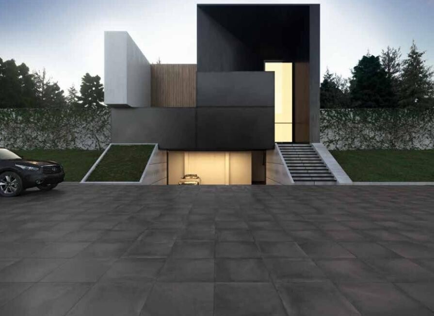 Van Castelvetro Concept is dit de Land variant uitvoering terrastegels formaat 80x80x2 cm. De kleuren zijn Black, Dark Grey en Muddy.