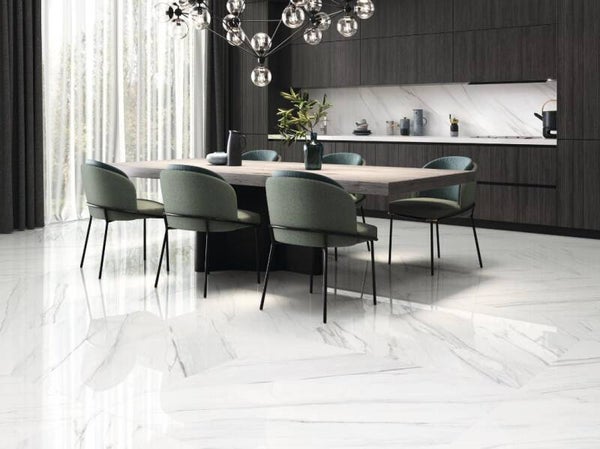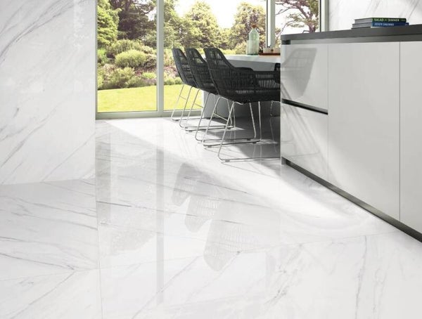 In de zeer populaire marmerlook hier de porseleinen, gepolijste en gerectificeerde tegel Carrara. Een witte marmer met een fijne grijze ader. Geschikt voor wand- en vloer binnenshuis. Voor de vloer in de badkamer is het advies geen glans tegel toe te passen in verband met de gladheid van de tegel als er water op komt. De levertijd van de 60x120 cm glans is een week. De levertijd van de overige tegels is ca 4 weken. De prijs is per m2. De palletprijs is voor bestellingen van meer dan 40 m2. De dozenprijs is voor bestelling van minder dan 40 m2.