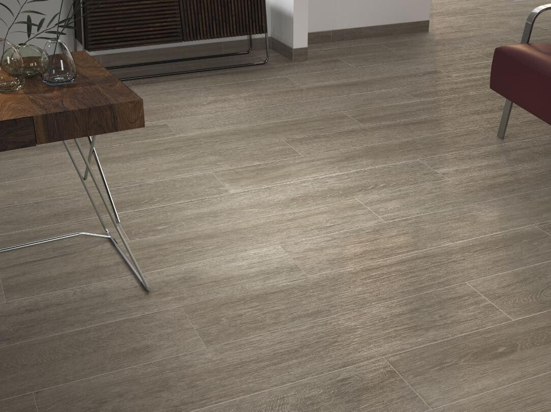 Rustige neutrale houtlook tegel van verglaasd porselein. Slijtvast en gemakkelijk in onderhoud. Prijs is per m2. Levertijd is een week.