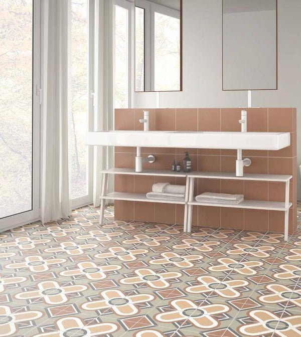 Geinspireerd door de Bauhaus stijl is deze serie tegels ontworpen met sterke grafische patronen, veel rechte lijnen en een kleurgebruik dat aan de jaren 70 doet denken. Mooie combinatie. Tegels zijn van porselein in formaat 20x20 cm. Er zijn unikleuren beschikbaar om te combineren. Prijs is per m2. Levertijd is 3 tot 4 weken.